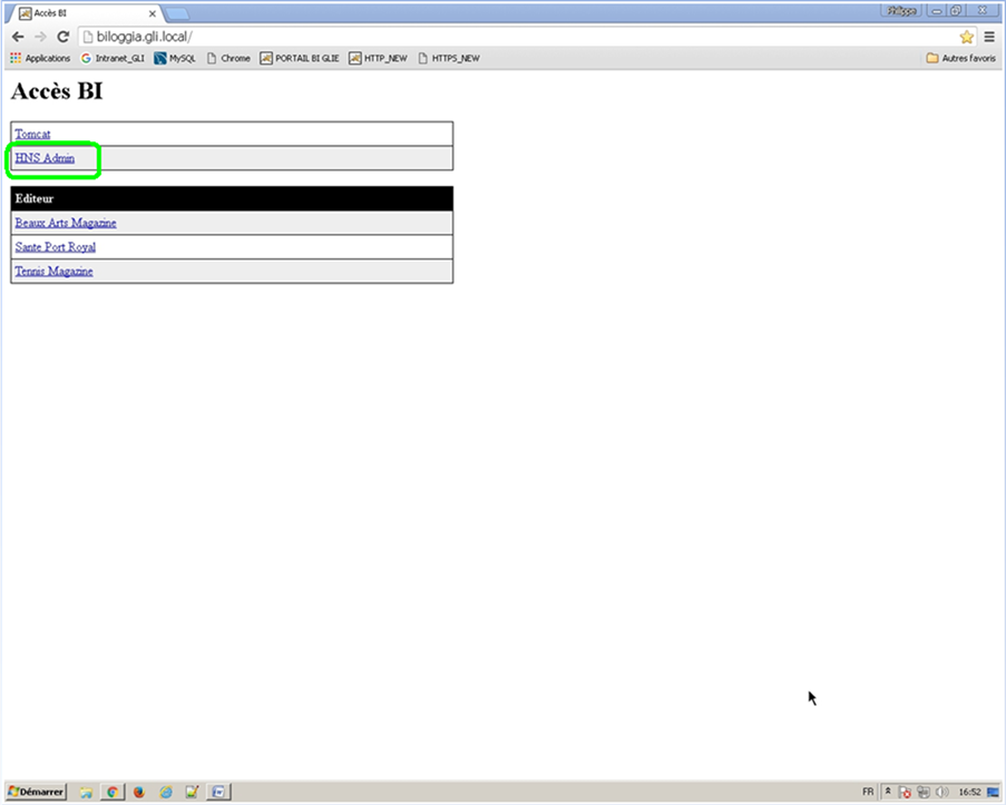 Reconnectez-vous sur l’URL http://biloggia.gli.local et choisissez l’option HNS Admin
