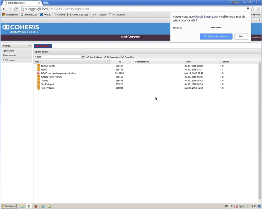 Connectez-vous sur l’URL http://biloggia.gli.local