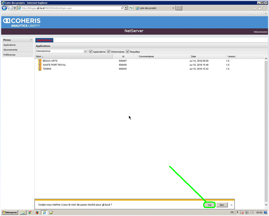 Cliquez sur le bouton OUI pour enregistrer le nouveau mot de passe dans Internet Explorer